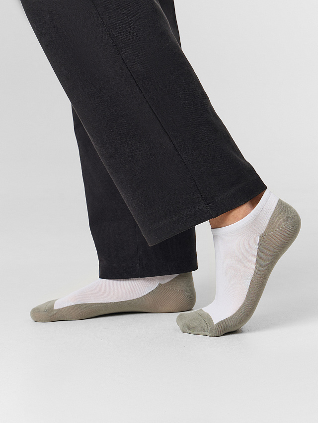 рис.3091 Суперкороткие мужские носки с цветной нижней частью следа, пяткой, мыском. белый /оливка