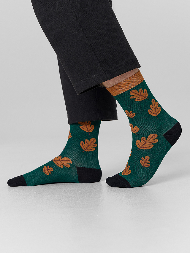 рис.3346 Мужской носок классический, с рисунком в виде листьев. хвойный
