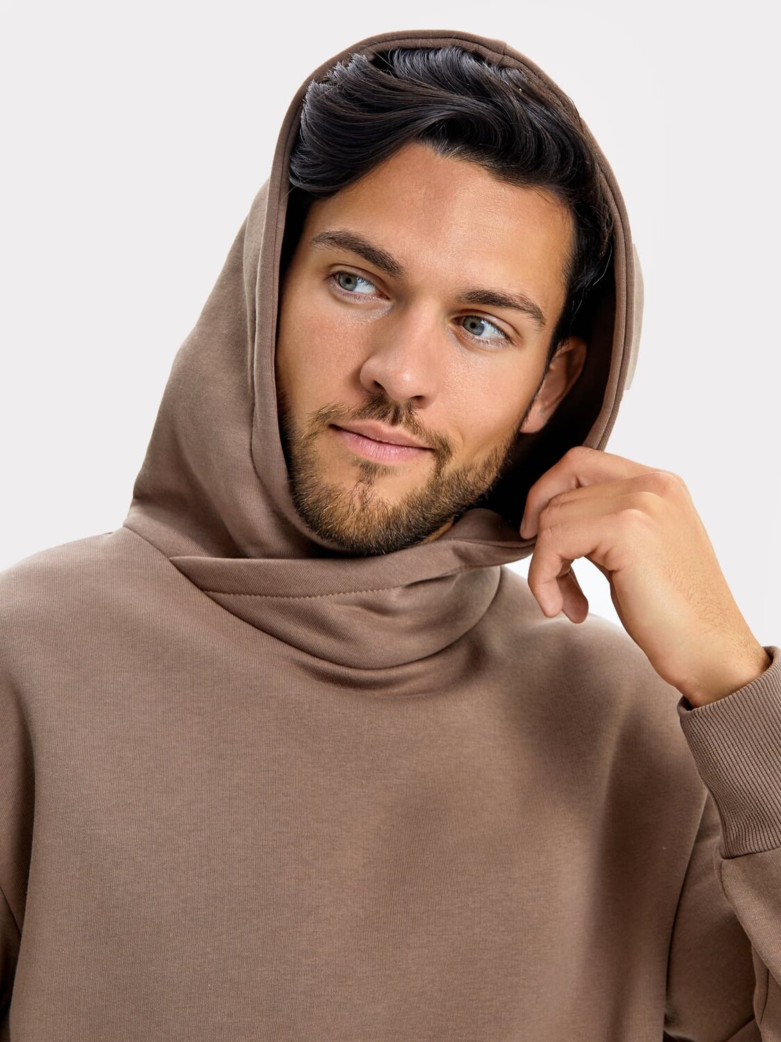 На передней детале настрочен карман кенгуру. Рукава длинные втачные со спущенной линией плеча. По низу рукавов и анорака притачены манжеты и пояс из рибаны.