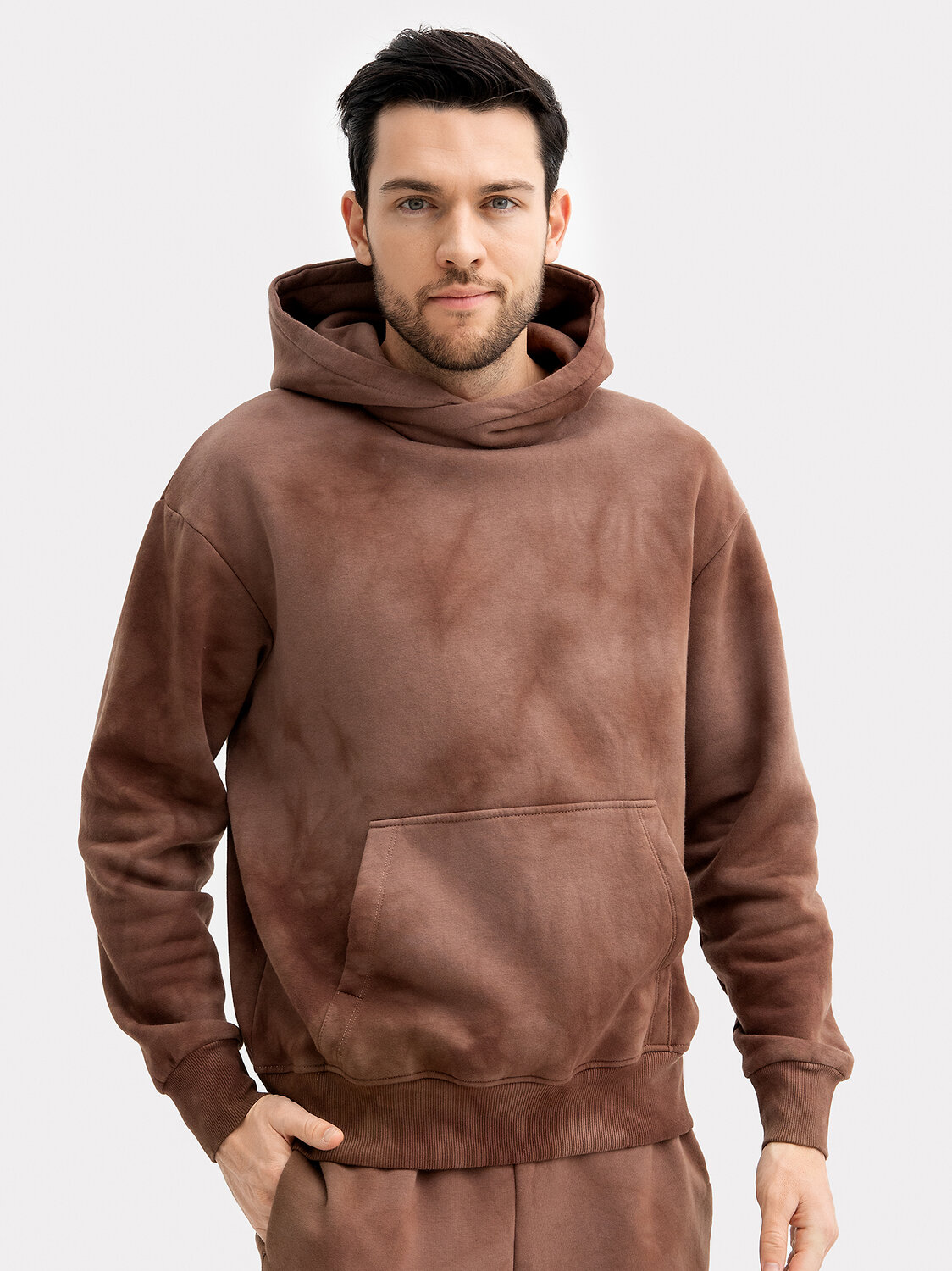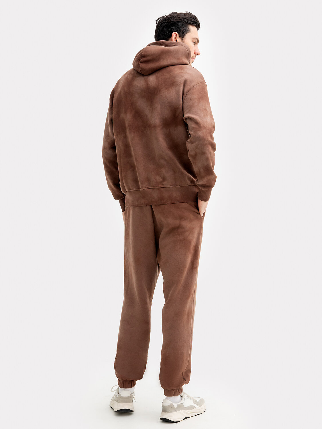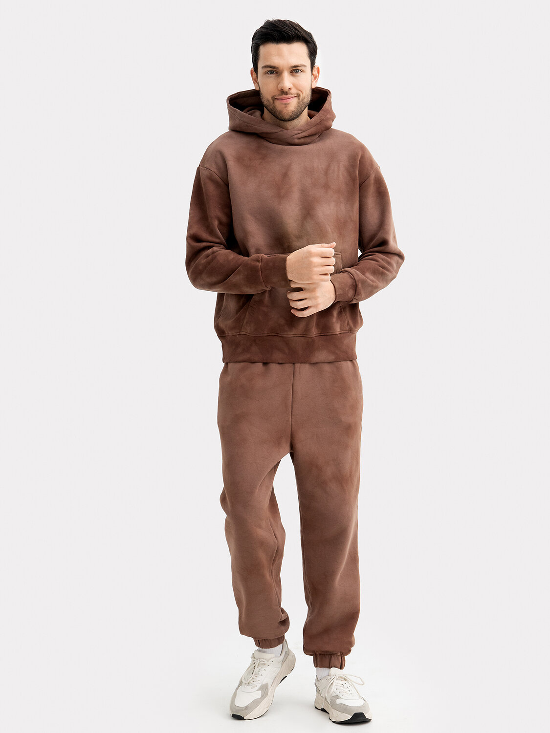 Комплект выполнен из трикотажного полотна футер. Анорак прямого силуэта, перед и спинка цельнокроеные. Круглый вырез горловины, с капюшоном.