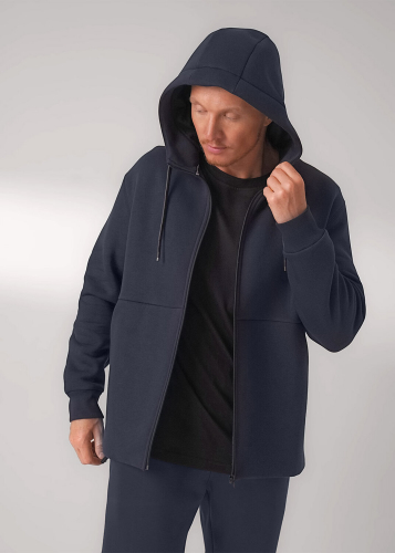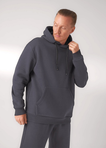 На передней детале настрочен карман кенгуру. Рукава длинные втачные со спущенной линией плеча. По низу рукавов и анорака притачены манжеты и пояс из рибаны.