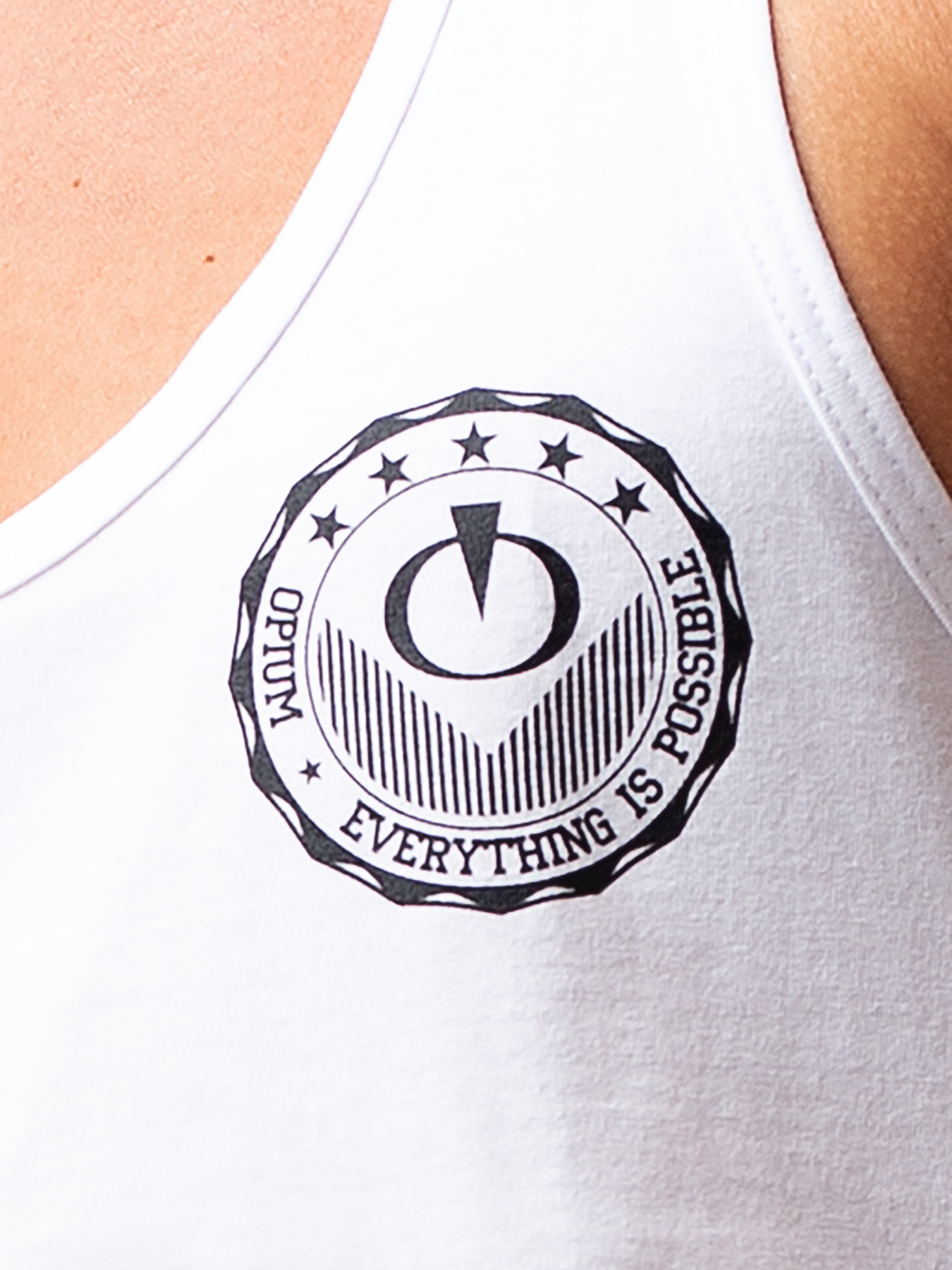 Фасон майки выгодной подчеркивает фигуру мужчины, его накаченное тело и крепкие руки. Дополнительный модный элемент – контрастный принт в виде эмблемы бренда на груди и логотип OPIUM сзади.