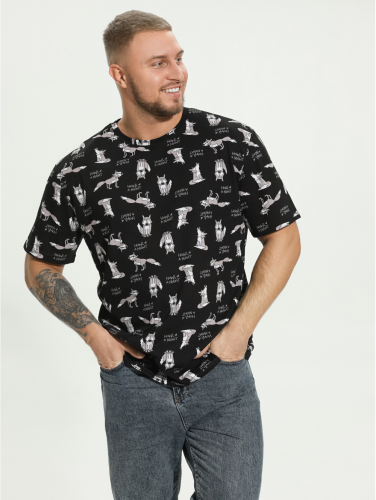 Молодежная трикотажная футболка с модным принтом. свободного кроя, с округлым вырезом горловины и коротким рукавом.