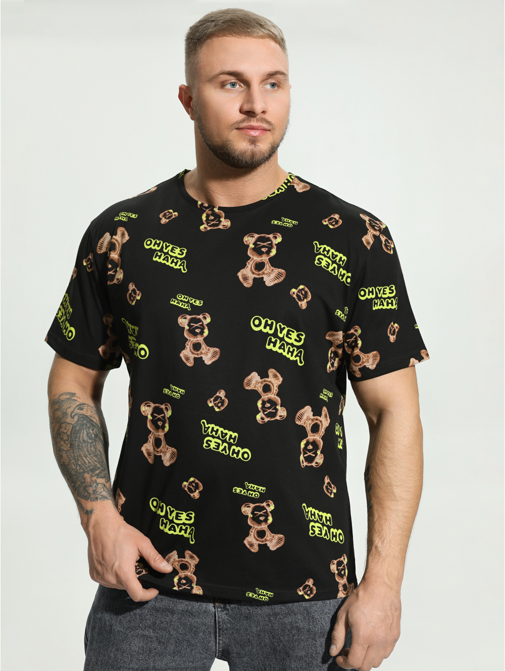 Молодежная трикотажная футболка с модным принтом. свободного кроя, с округлым вырезом горловины и коротким рукавом.