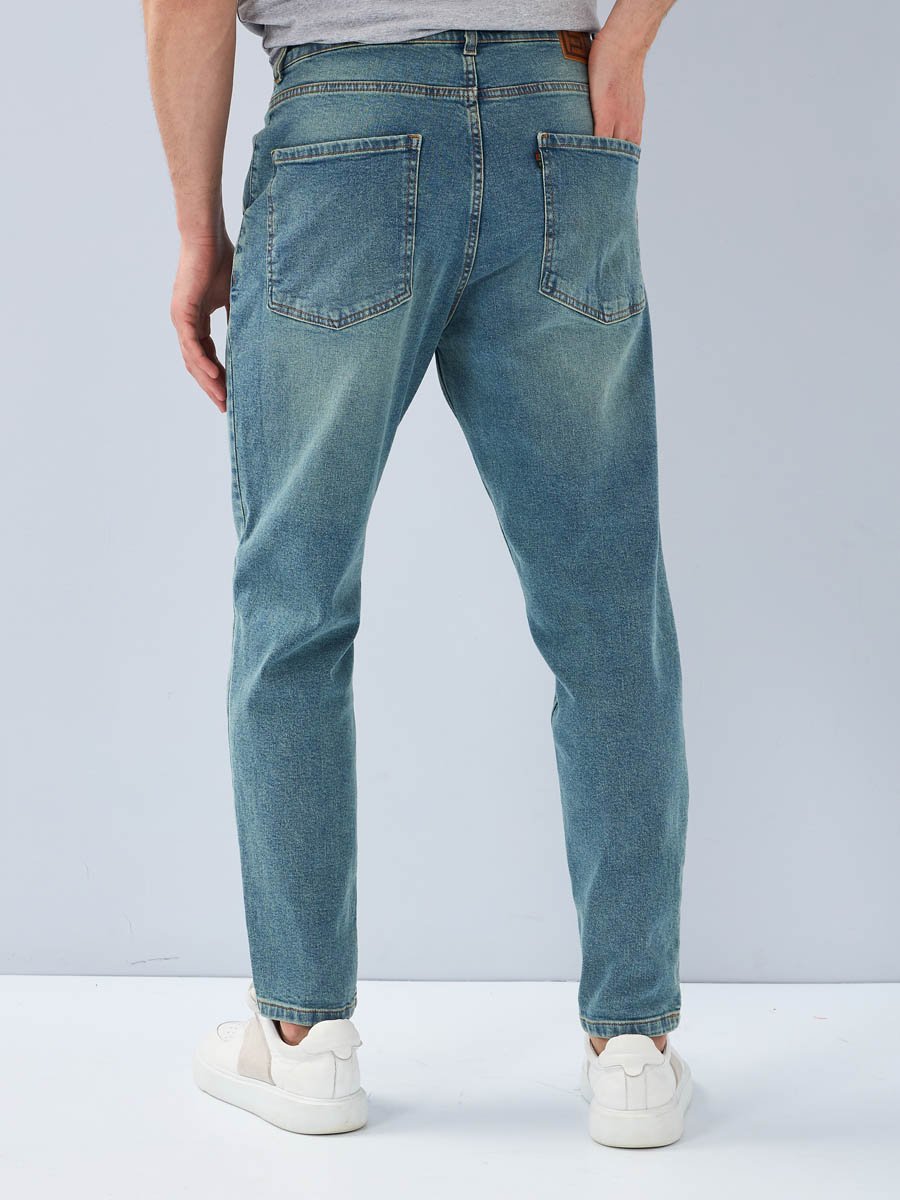 Мужские комфортные модные джинсы "Бананы" с пятью карманами.Для  удобства боковые карманы джинсов сделаны косыми , т.е.  карманы  "хулиганы".  Высокая талия, свободные по бедрам и бедру и узкие внизу. Застежка на молнии. Выполнены из классической  ткани denim, Классическая средняя стирка "stone wash".Джинсы дополнительно чуть-чуть подкрашены в желтый цвет для получения эффекта "GET DIRTY", т.е. эффекта запачканных джинсов. Материал: Blue denim 007 str.