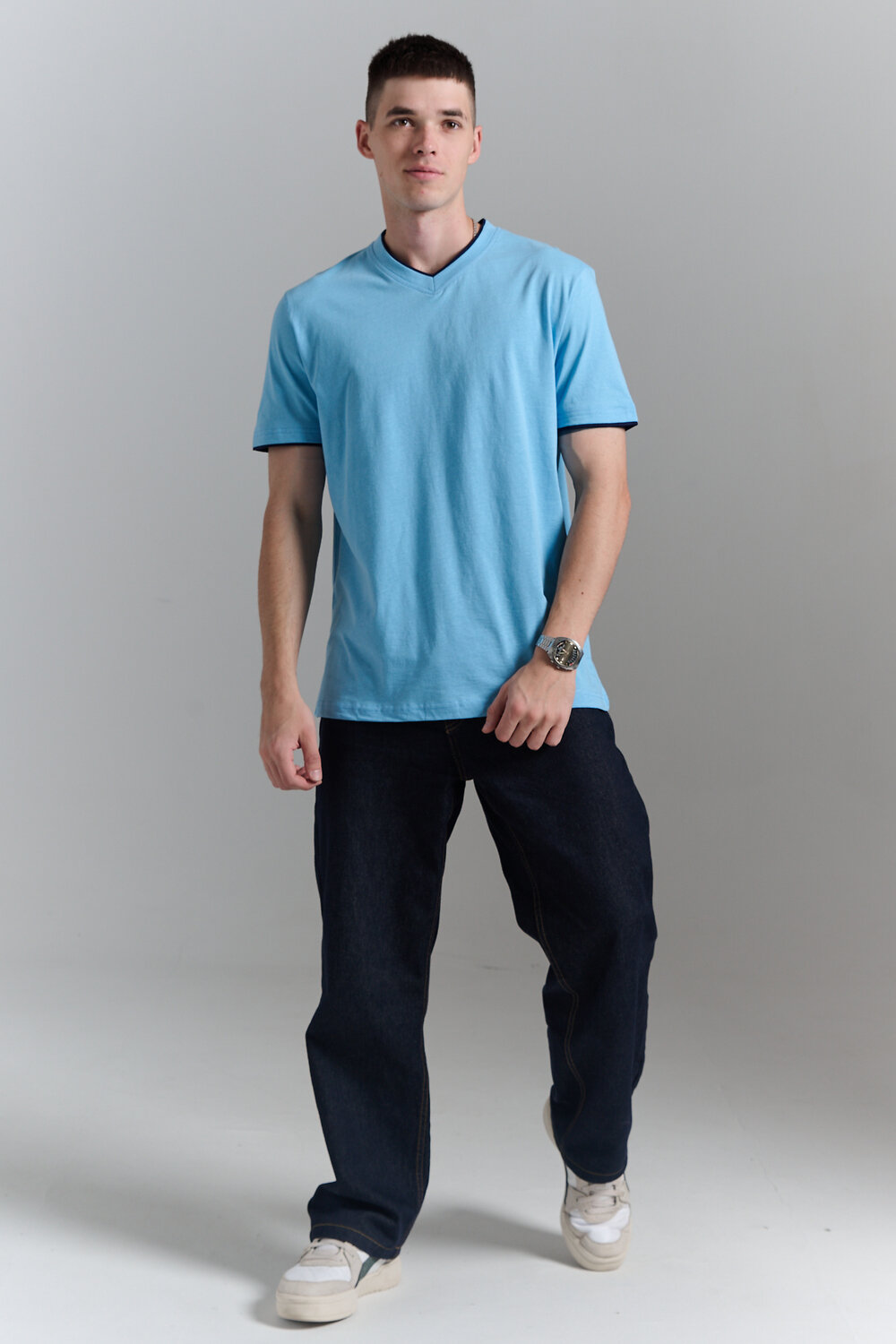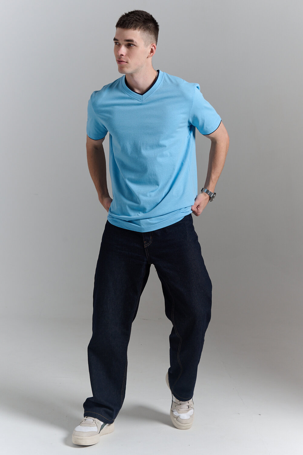 Футболка мужская однотонная с окантовкой из плотного дышащего хлопка. Модель в расслабленном молодежном стиле. Свободный прямой крой база для любого гардероба. Представлены мягкие футболки стандартных размеров, подходят на высокий рост. С усиленным V-Образным вырезом и окантовкой, подойдет для тренировок, офиса, учебы, активного отдыха, туристических поездок, встреч с друзьями и дома.