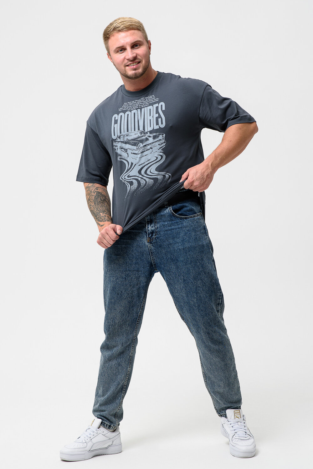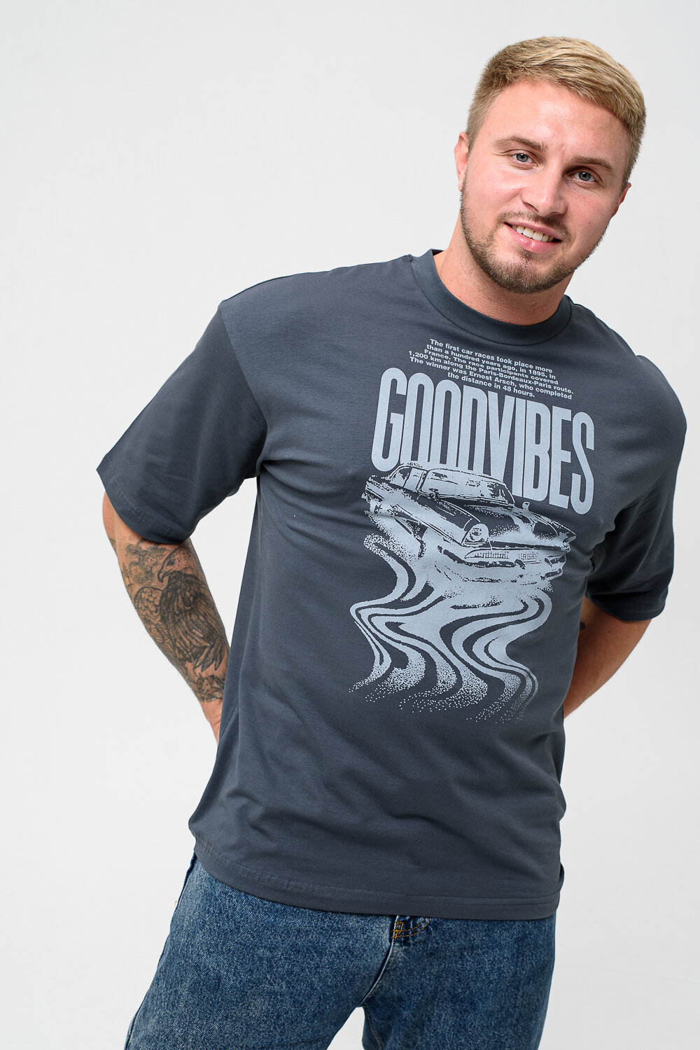 Футболка прямая, средней длины, с округлой горловиной. Рукав короткий. Горловина обработана обтачкой.
