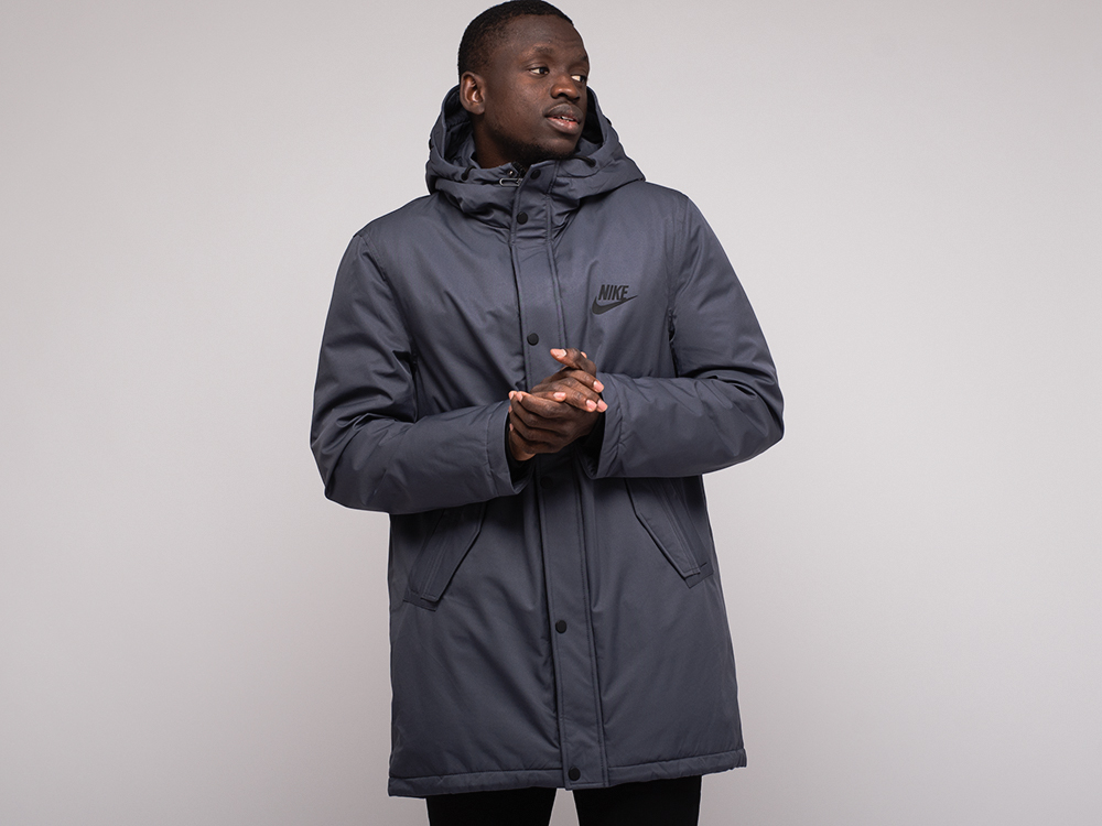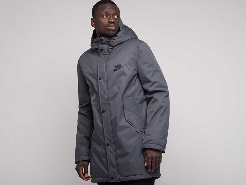 Удлиненная парка Nike с минималистичным дизайном в виде логотипа черного цвета имеет свободный