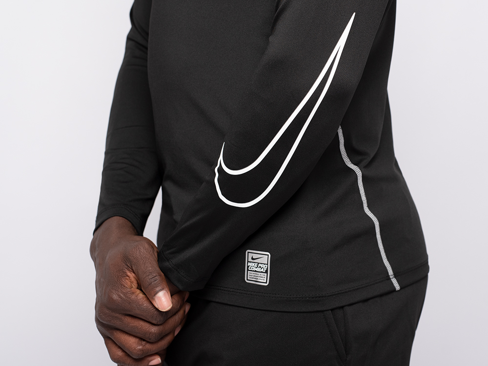 Рашгард Nike пошит из эластичного полиэстера, который облегает тело.