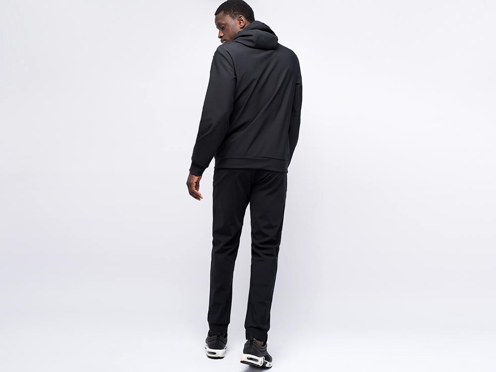 Представленный костюм выполнен в классическом черном цвете. На груди красуется