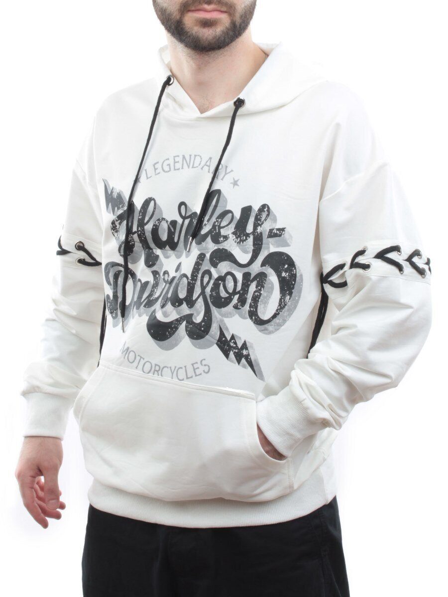 Трикотажные манжеты на рукавах и по низу толстовки.