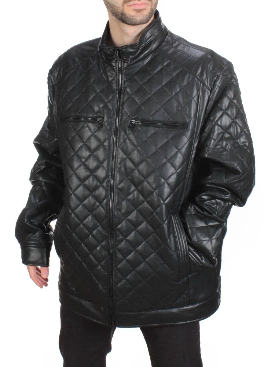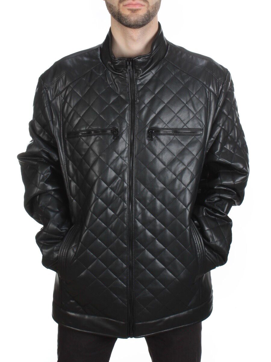 198-1 BLACK Куртка из эко-кожи мужская (50 гр. синтепон)