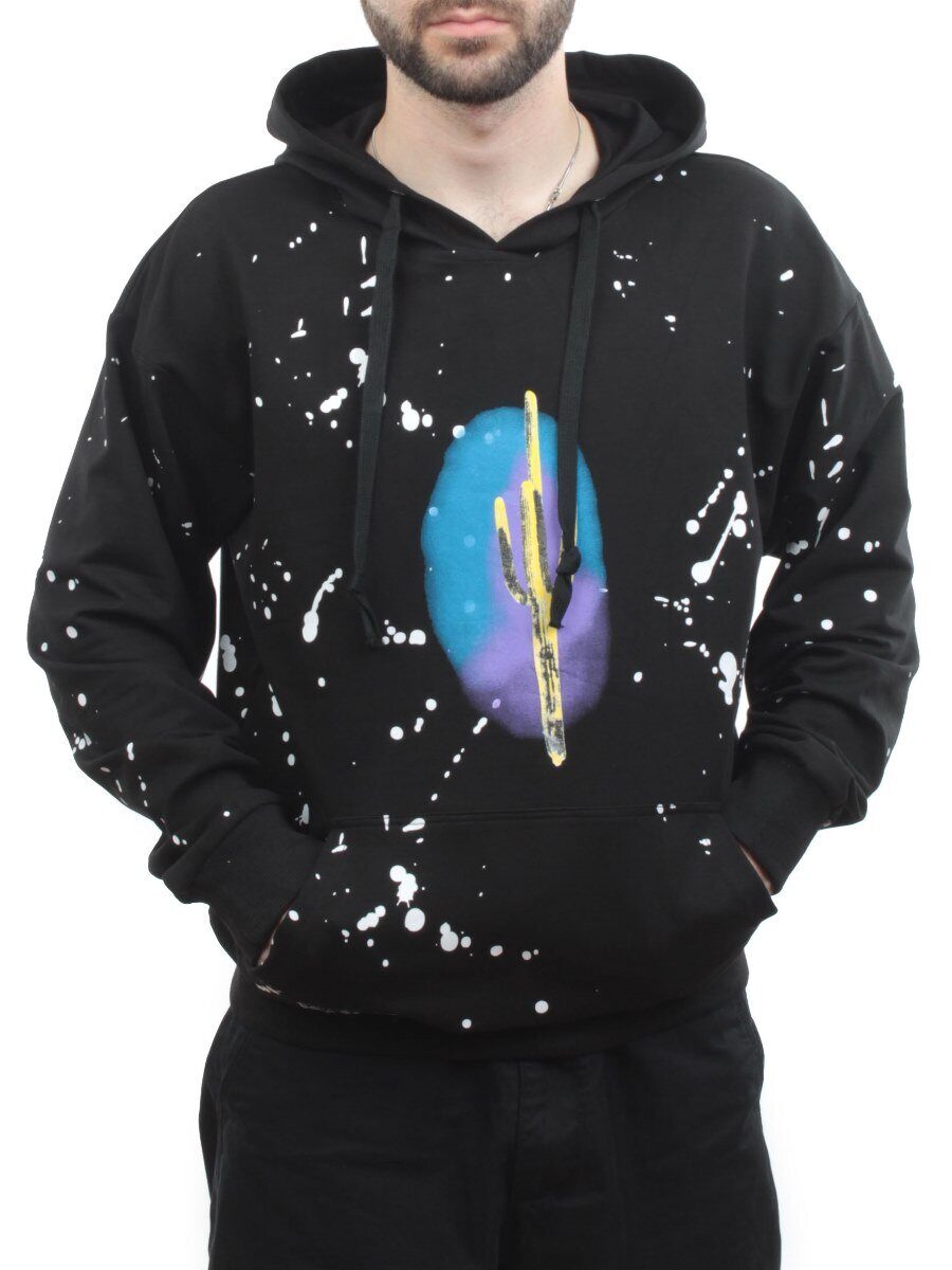 Трикотажные манжеты на рукавах и по низу толстовки.
