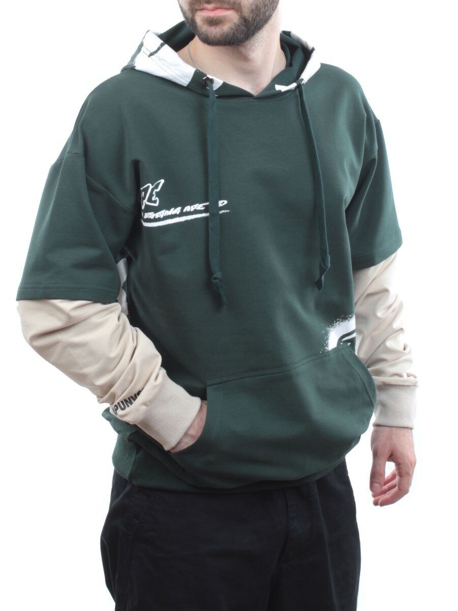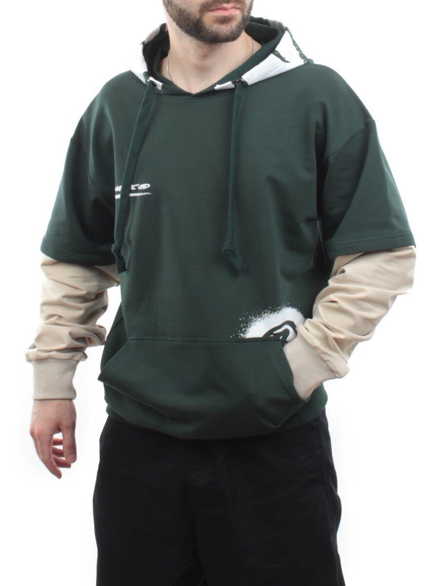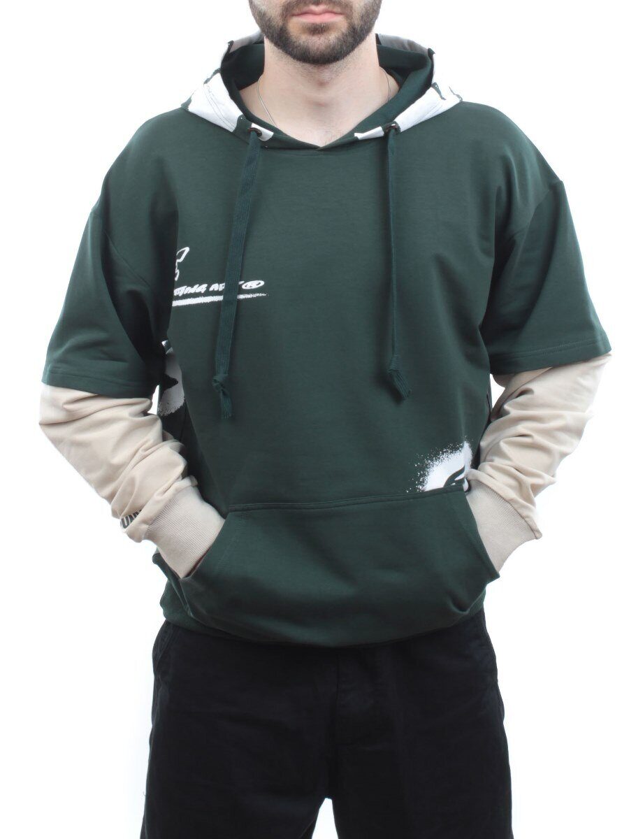 2702 GREEN/BEIGE Толстовка мужская (75% хлопок, 20% полиэстер, 5% спандекс)