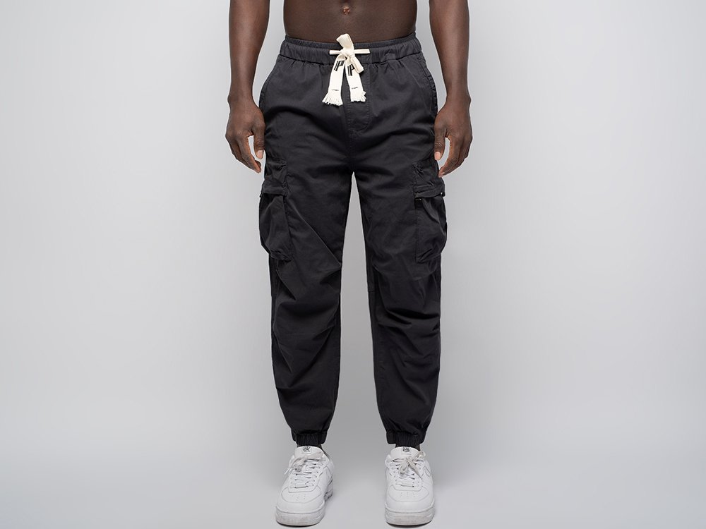 поясом на шнурке и манжетами в нижней части брючин для надежной фиксации.
