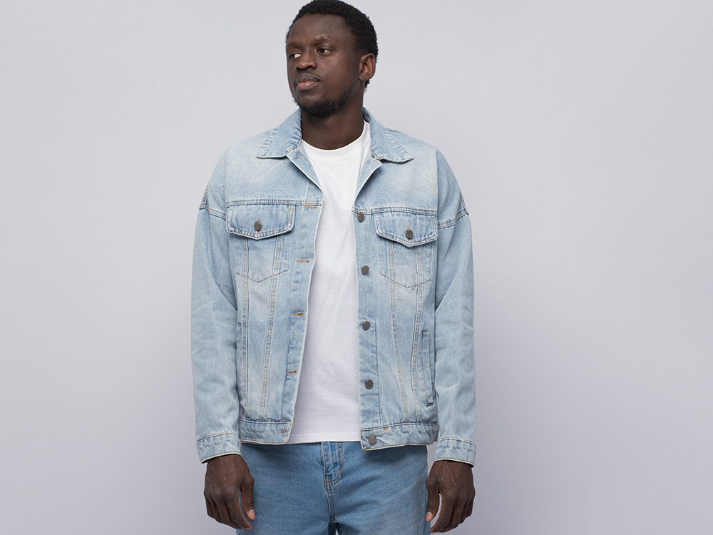 с декоративными потертостями, которые выглядят естественно. Куртка с застежкой