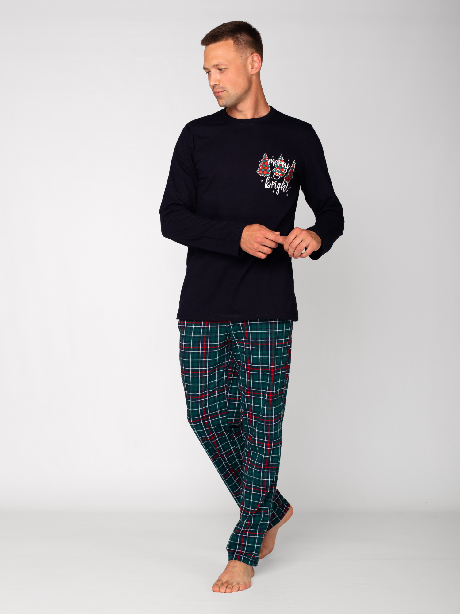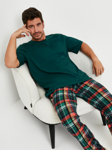 Пижама мужская кулирка с брюками "ЕЛКИ" ЗЕЛЕНЫЙ
