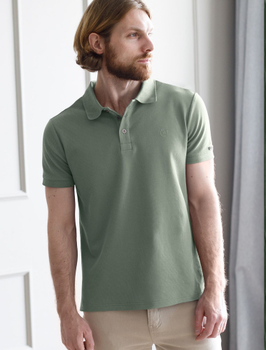 Поло выполнено из фактурного премиального хлопка. Модель с контрастным воротом и манжетами дополнили нашивкой с логотипом бренда из эко-кожи. Плетение ворота и манжет гладкое. Пуговицы темно-серебряного матового цвета. Изделие хорошо тянется, обеспечивая свободу движений, и надолго сохраняет безупречный внешний вид.