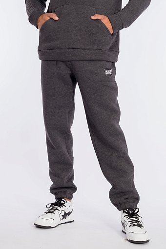 Мужские брюки выполнены из полотна с начёсом. По бокам расположены карманы. Пояс на резине и шнуре, по низу брюк резина.