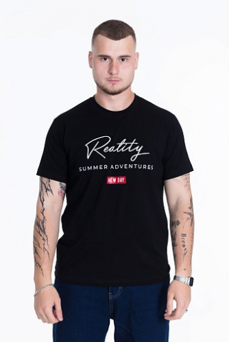 Мужская хлопковая футболка с круглым вырезом горловины, втачным рукавом и принтом на полочке.