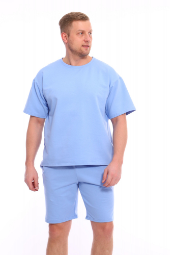 Стильный мужской костюм из футера 2-х нитки. Состоит из свитшота и брюк, выполненных из ткани разных расцветок, что добавляет эффектности. Свитшот с рукавом реглан, с округлым вырезом горловины обработан обтачкой. Низ изделия и рукава обработаны манжетами из эластичного материала. Брюки с притачным широким поясом, карманами формы хулиган, низ подогнут с резинкой.