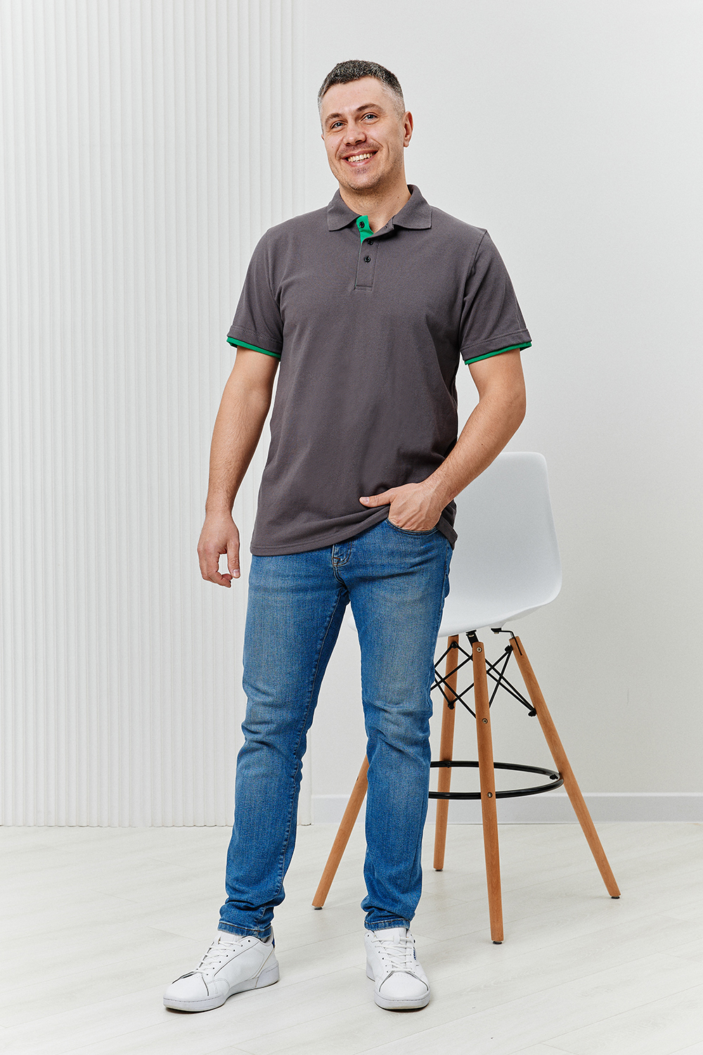 В размер, на мужчинку с небольшим совсем животиком села отлично, не обтягивает. Качество хорошее.