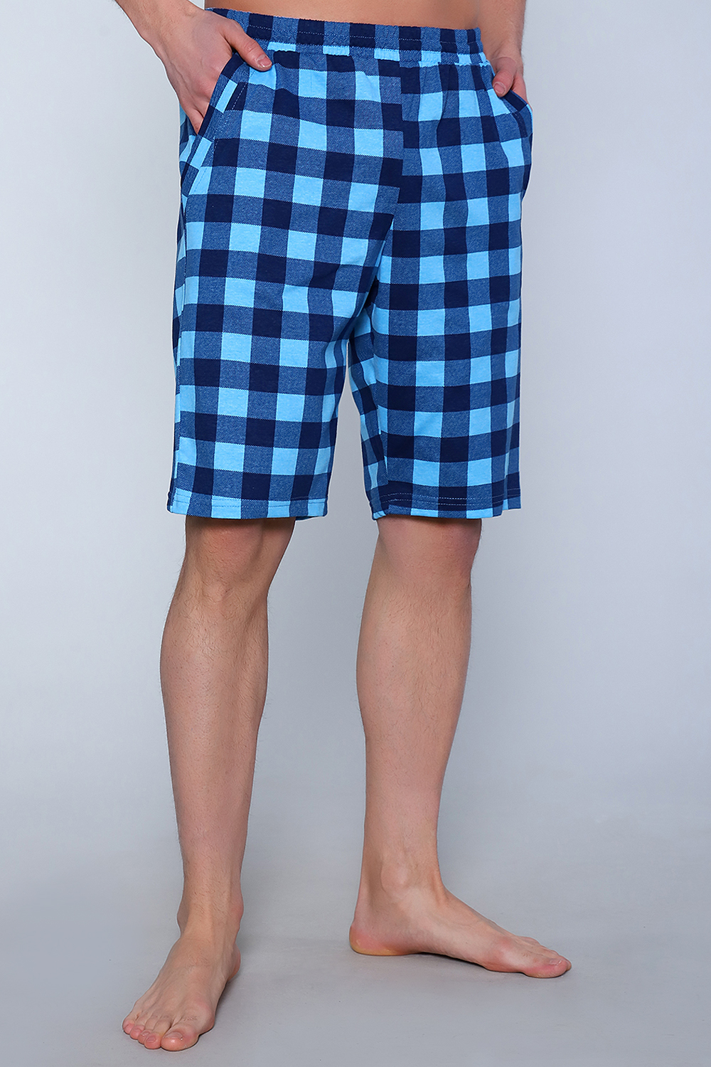 Мужские шорты прямого силуэта длиной до уровня колен на широкой резинке на поясе. Для удобства модель выполнена с боковыми карманами на передних половинках, вход в карман наклонный с декоративной притачной планкой. Пояс с эластичной тесьмой шириной в 4 см выполнен с декоративной отстрочкой на поясной машине. Шорты выполнены из хлопковой трикотажной ткани с принтом в виде клетки, которая дышит, в меру эластична, не стесняет движений, очень удобна и комфортна в носке дома, на улице, на природе, на пляже и на занятиях спортом.