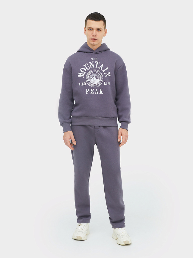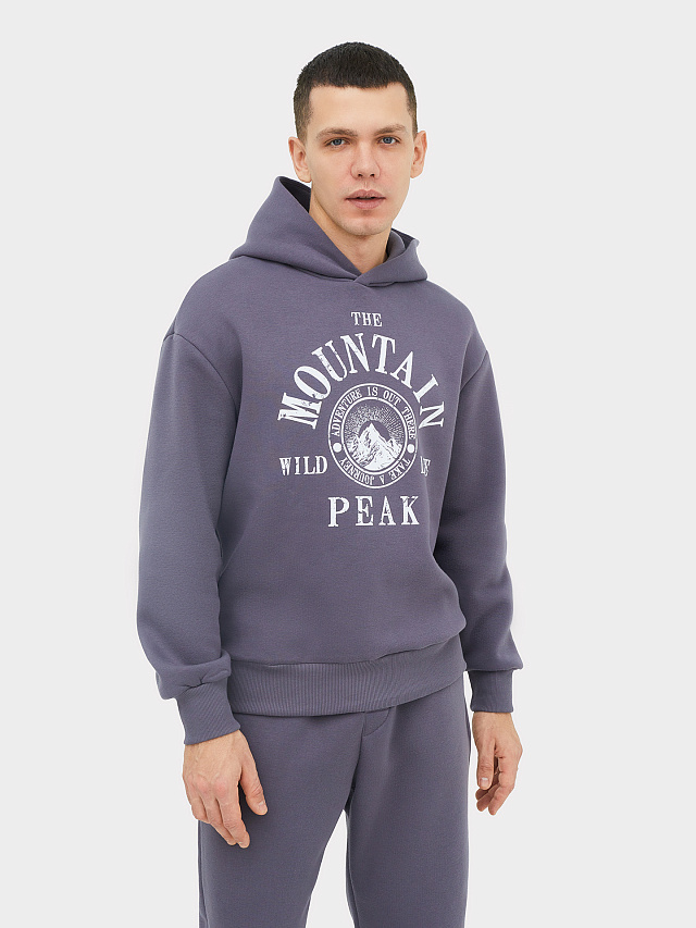 Стильный мужской анорак (худи) прямого силуэта, слегка посаженный на пояс. Выполнен из трикотажного футера с теплым подчесом и принтом в виде надписи "THE MOUNTAIN WILD LIFE PEAK". Горловина круглая, с уютным капюшоном, который спереди идет внахлест. Рукава длинные, на манжетах. Слегка спущенная линия плеча и немного углубленная пройма дарят свободу движений. Широкий размерный и цветовой ряд. Хорошо сядет на любую мужскую фигуру. Дополнить можно низом из линейки базовой одежды. Отличный мужской анорак для лаконичных городских образов!