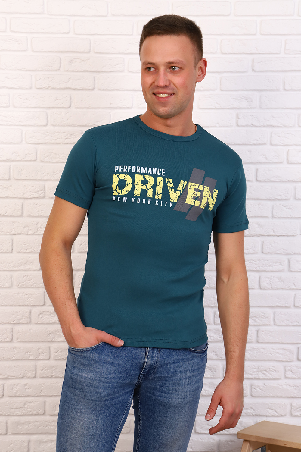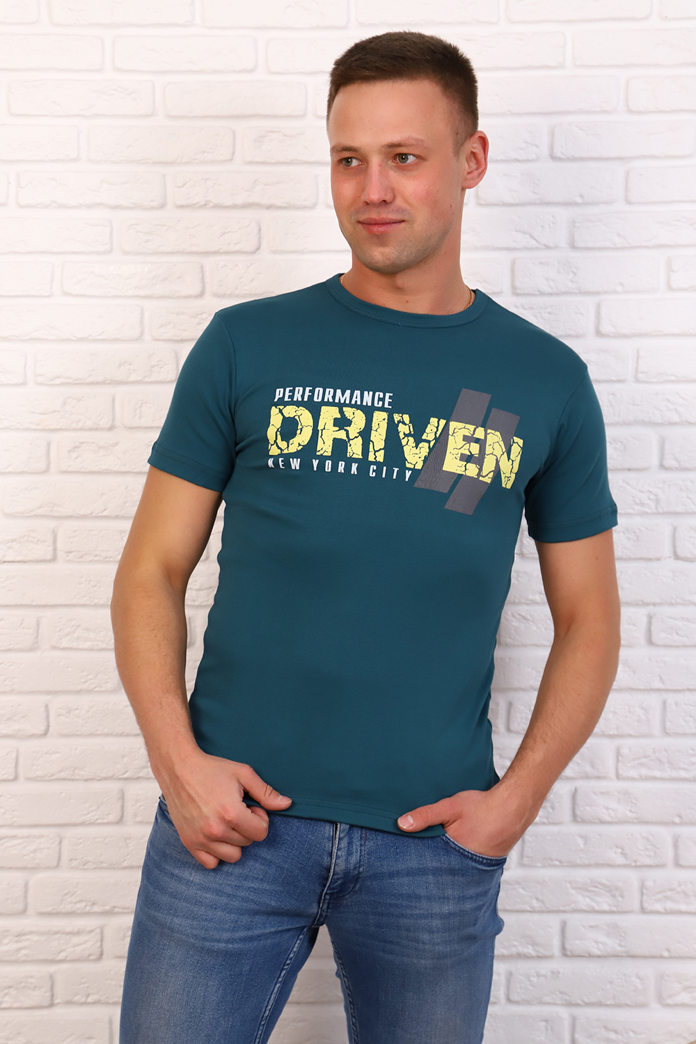 Мужская футболка из кулирки. Короткие рукава, круглая горловина, прямой силуэт. Полочка украшена печатью. Подойдет на любой случай жизни. Цвет: зеленый;светло-голубой; Материал: кулирка;кулирка; Состав: 100% хлопок.