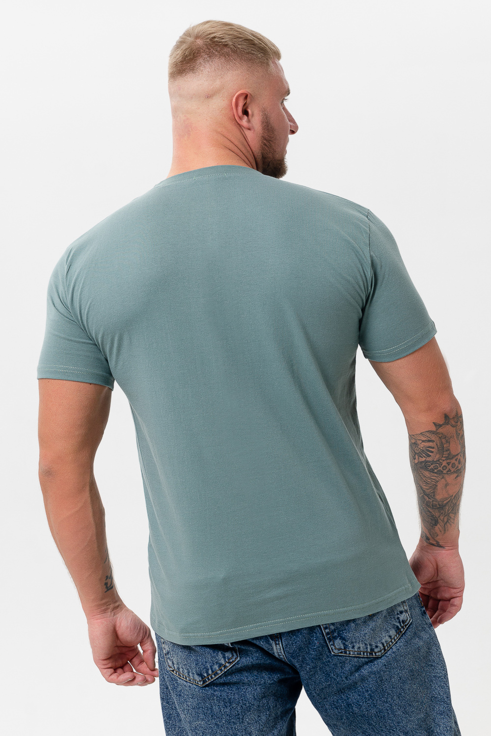 Футболка мужская повседневная из кулирки 100% хлопок. Горловина обработана обтачкой, рукав подшит. Футболка удобная, комфортная, подойдет для дома и отдыха. Цвет: олива;зеленый; Материал: кулирка;кулирка; Состав: 100% хлопок.