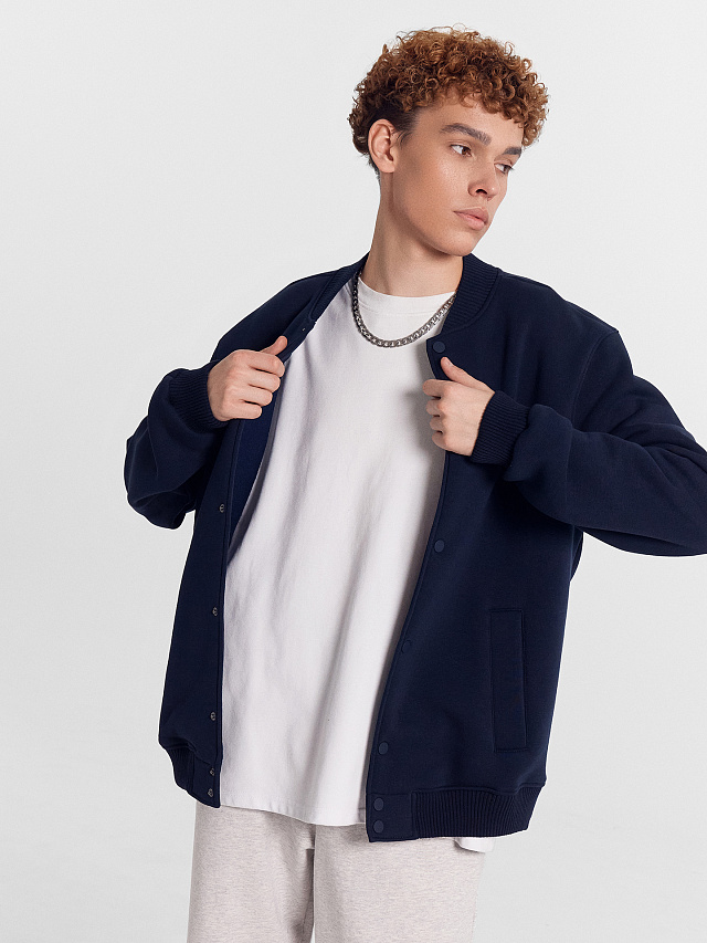 Мужской бомбер из трикотажного футера с подчесом — идеальный выбор для стильного и удобного повседневного образа. Модель свободного силуэта имеет круглую горловину с воротником-стойкой, что добавляет классический элемент дизайна. А длинные рукава с эластичными манжетами обеспечивают комфорт и практичность. Оснащен боковыми карманами с подкладкой из кулирки, что добавляет дополнительное удобство. Центральная застежка на кнопки делает его легко надеваемым и снимаемым. Этот бомбер станет отличным дополнением к вашему гардеробу, сочетая в себе стиль и комфорт.
