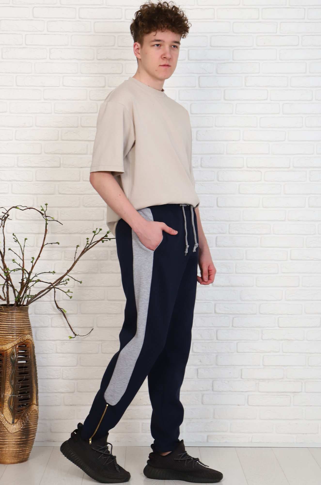 Стильные спортивные брюки для мужчин - это новинка сезона зима-осень. Модель зауженная к низу, с удобными боковыми карманами. По низу - декорированная металлическая молния - имитирует манжет. По бокам вставка из контрастной ткани делает модель более яркой и оригинальной. Ткань - мягкий и тёплый супер-футер с начёсом, плотность 320-350 г/м2.