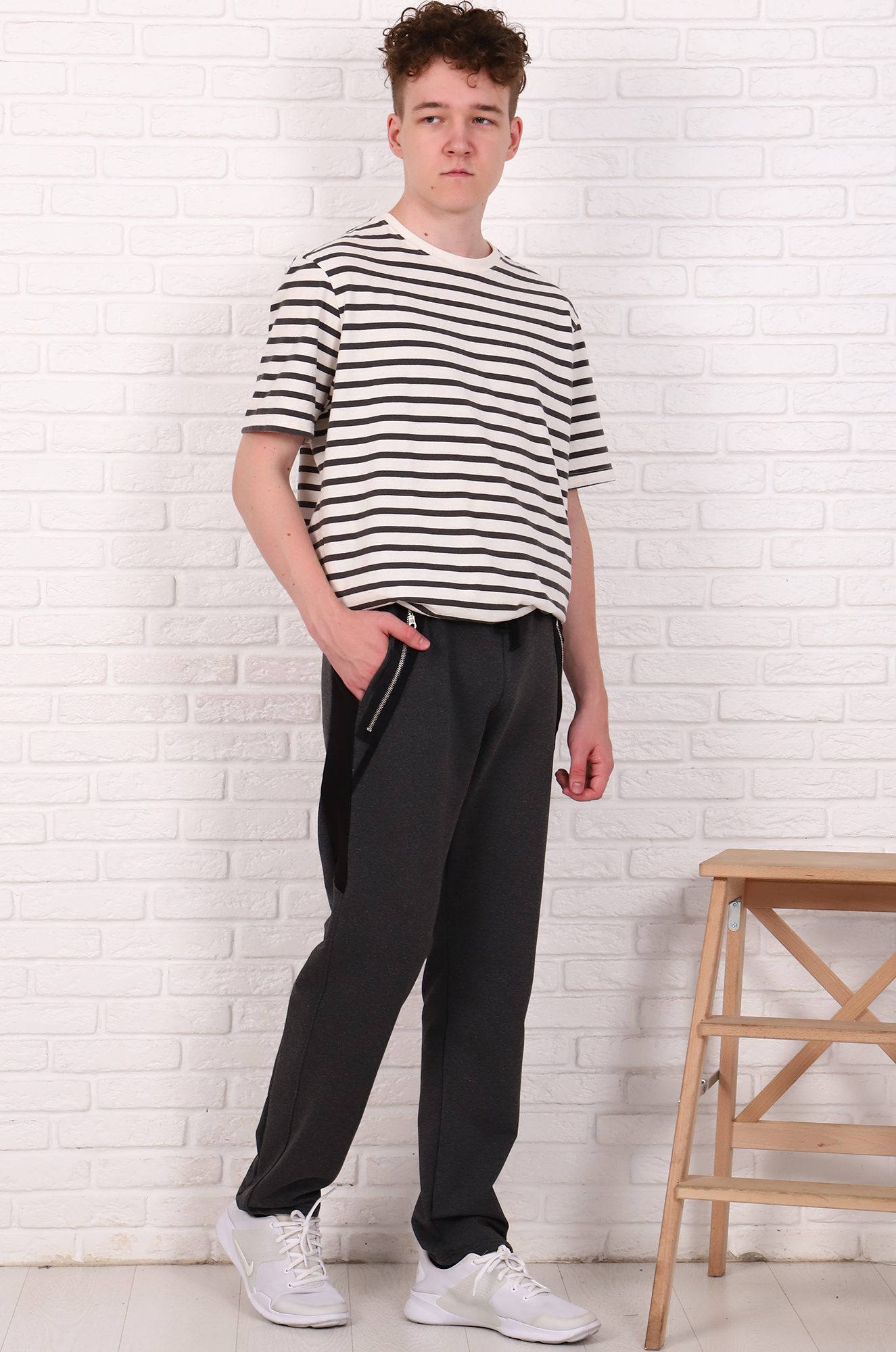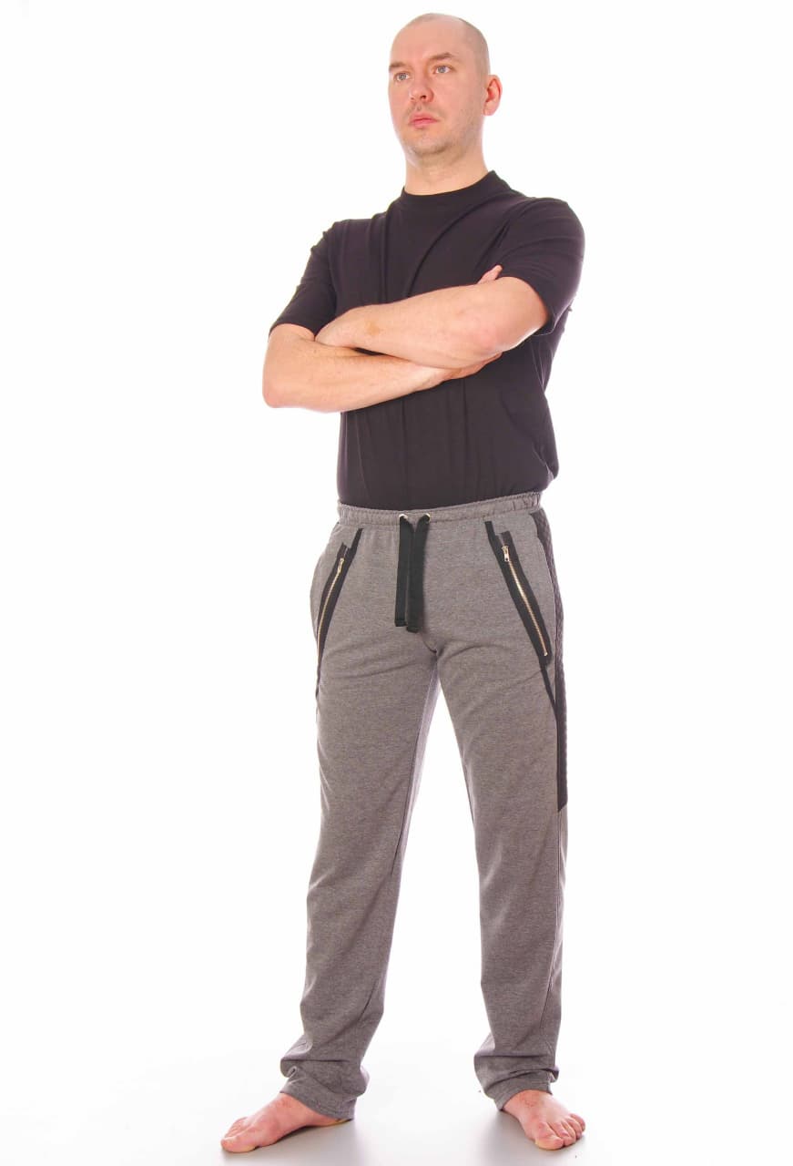 Новая стильная модель для тех, кто хочет выделяться и идёт в ногу со временем! Брюки прямого фасона с удобными боковыми карманами из практичного и износостойкого футера с лайкрой. Комбинированные вставки по бокам и металлические молнии добавляют модели оригинальности! Пояс на широкой резинке и шнурке.