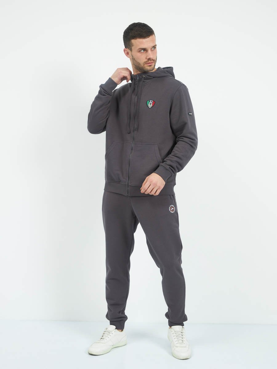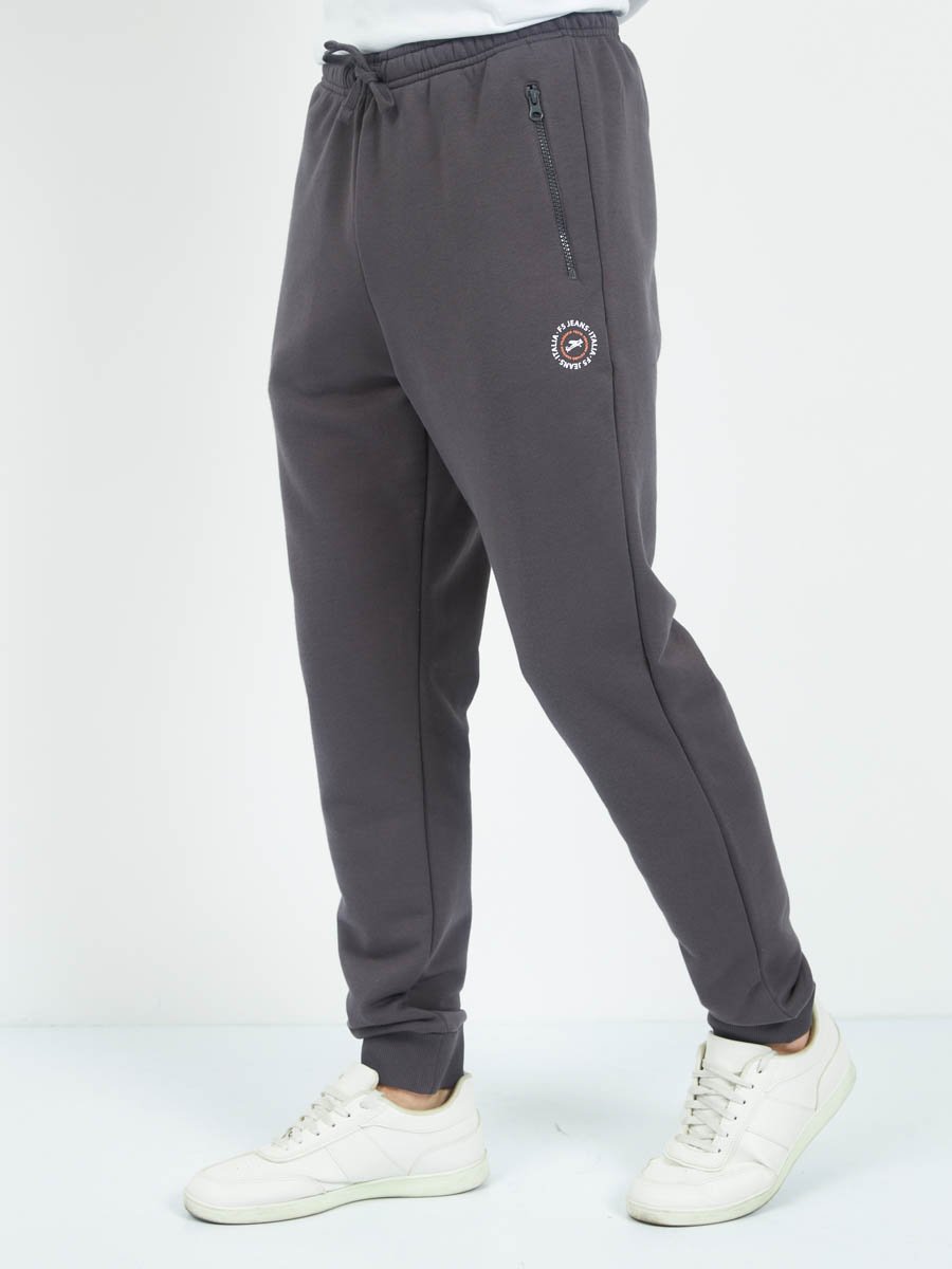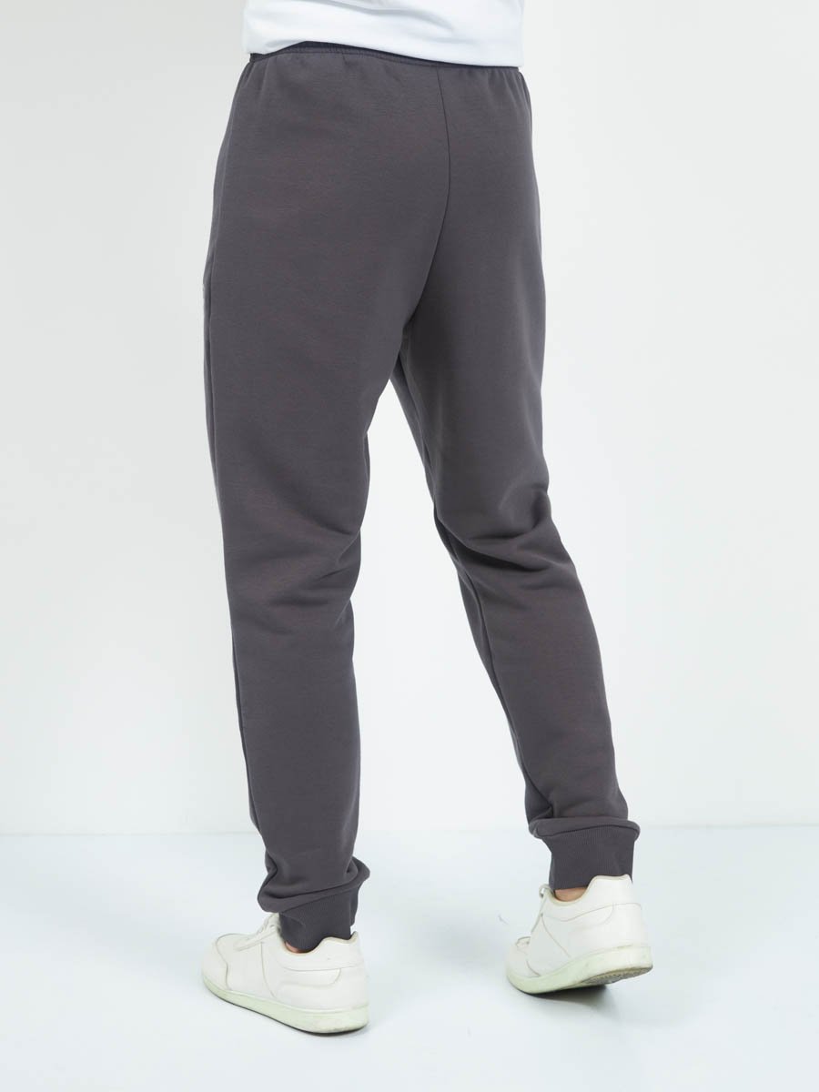 Классические трикотажные мужские брюки из хлопкового полотна с добавлением полиэстера. Спереди вместительные карманы на молнии. По низу штанин эластичные манжеты. Широкий пояс на резинке. В поясе шнур.
