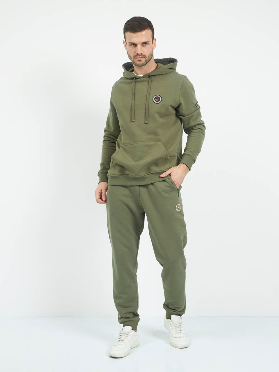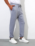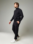 Классические трикотажные мужские брюки из хлопкового полотна с добавлением полиэстера. Спереди вместительные карманы на молнии. По низу штанин эластичные манжеты. Широкий пояс на резинке. В поясе шнур.