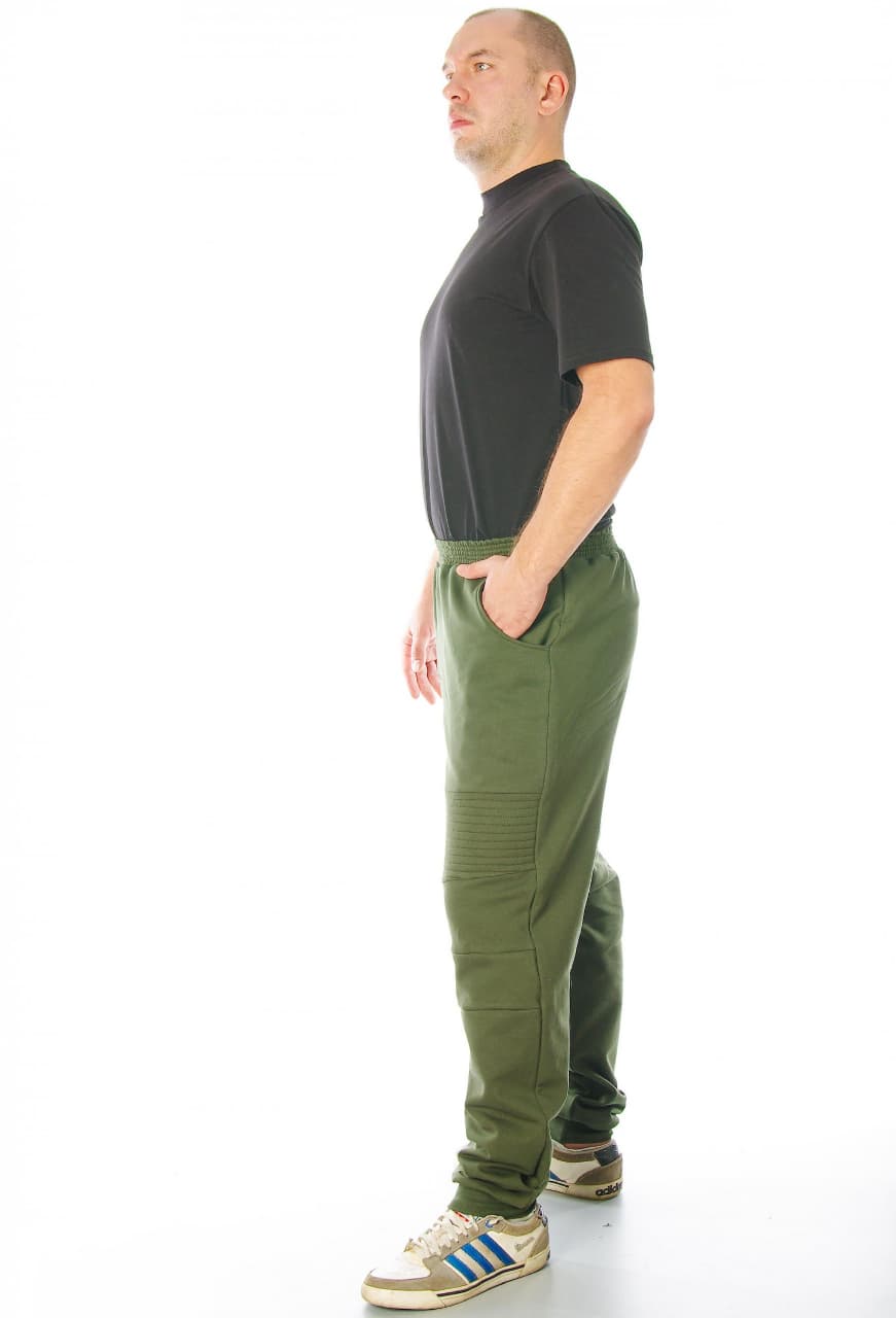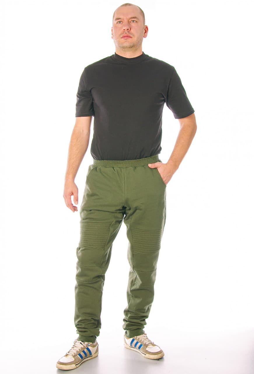 Модные зауженные спортивные брюки со стильной отстрочкой. Модель сложная, с отрезными деталями. Удобный пояс на резинке, внизу манжеты.