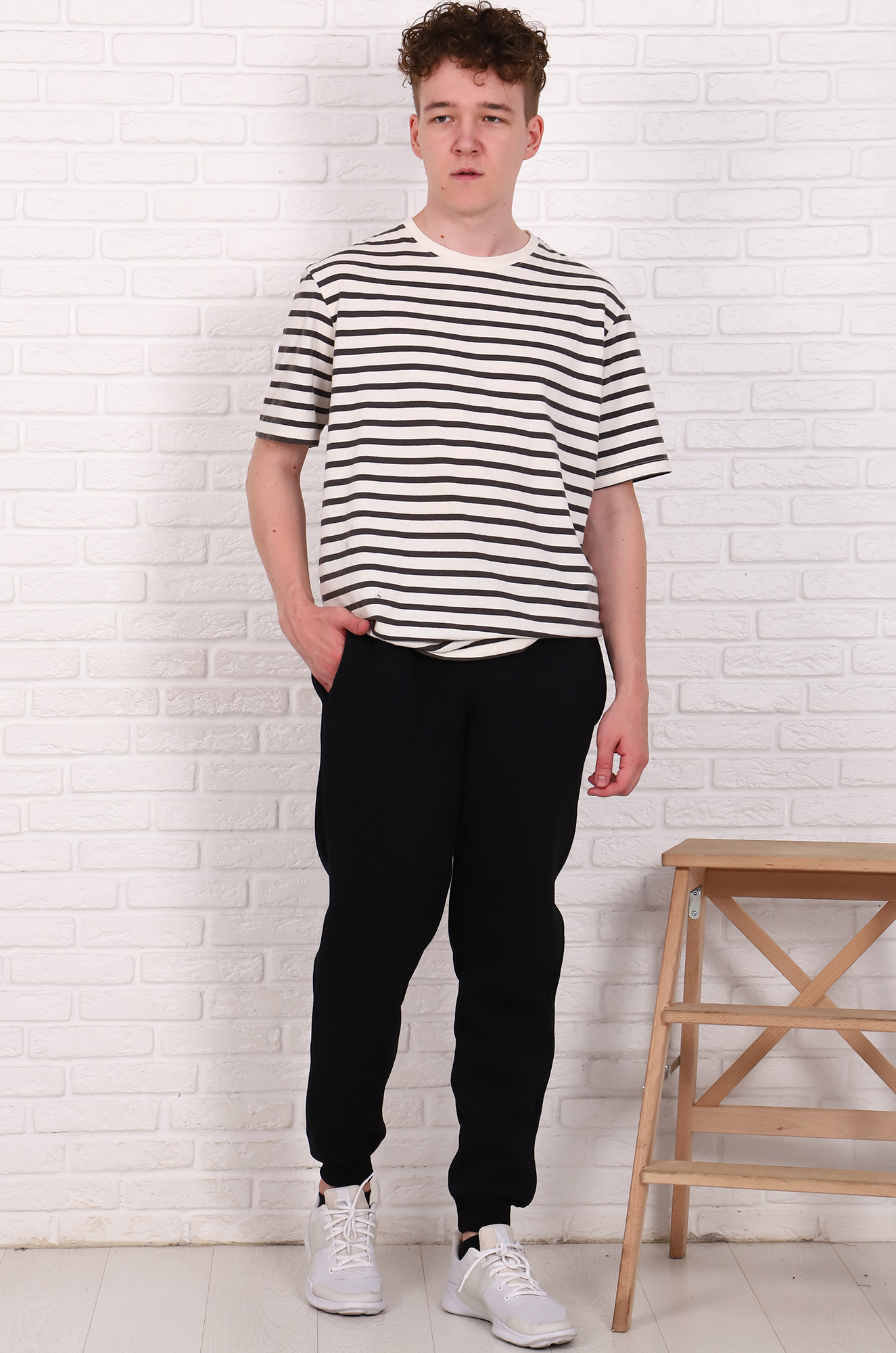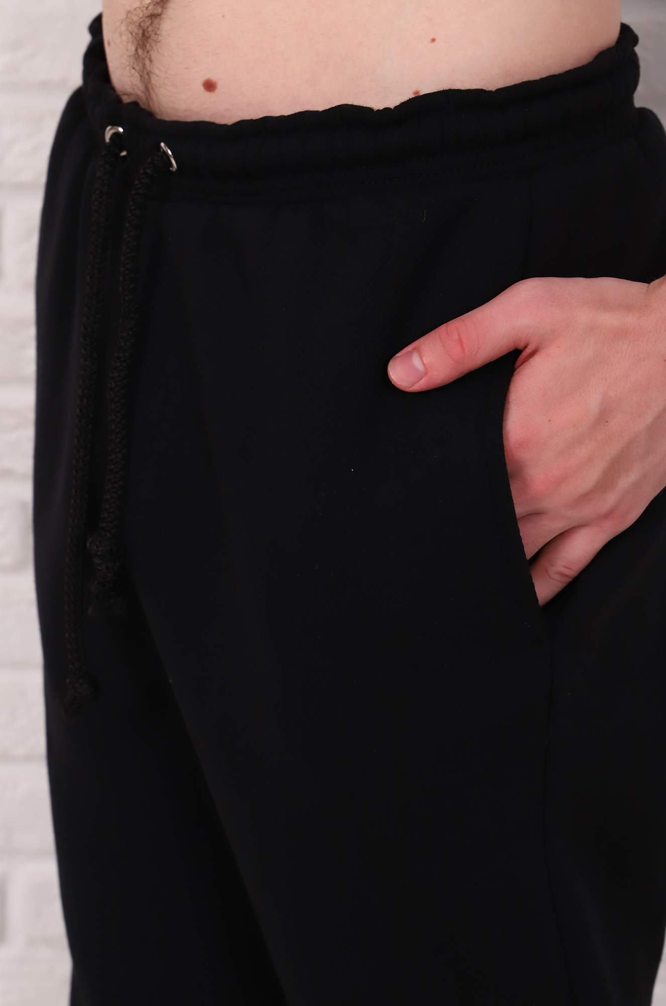 Тёплые спортивные брюки для модного "зимнего" образа. Модель снизу на эластичных манжетах, пояс на резинке и со шнурком, удобные боковые карманы.