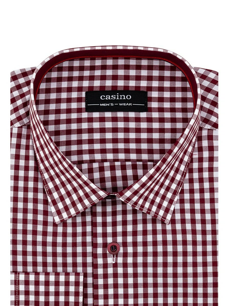 Цвет: Бордовый Рисунок: Клетка..показатьi> Состав: 70% хлопок 30% полиэстер Модель: Классическая Ворот: Европейский маленький Караман: отсутствует Манжет: классический закругленный на пуговицах Силуэт: Прямой силуэт / Сlassic fit Отделка: Сорочки- внутренняя стойка воротника и внутренний манжет из ткани компаньонаi>