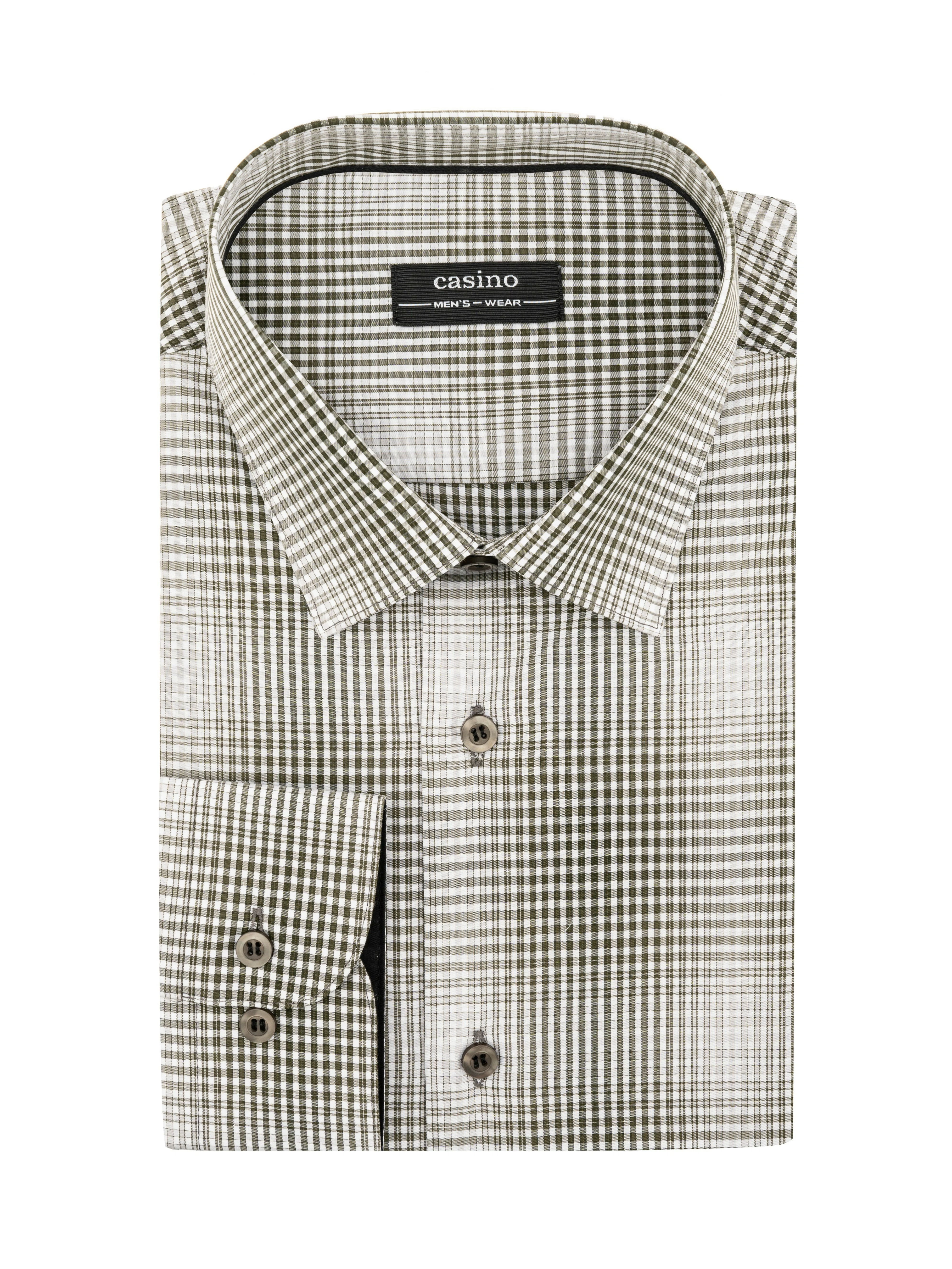Цвет: Зеленый Рисунок: Клетка..показать> Состав: 100% хлопок Модель: Зауженная Ворот: Европейский маленький Караман: отсутствует Манжет: классический закругленный на пуговицах Силуэт: Полуприталенный силуэт / Regular fit Отделка: Сорочки- кант по нижнему краю внутренней стойки воротника и внутренний манжет из ткани компаньона>