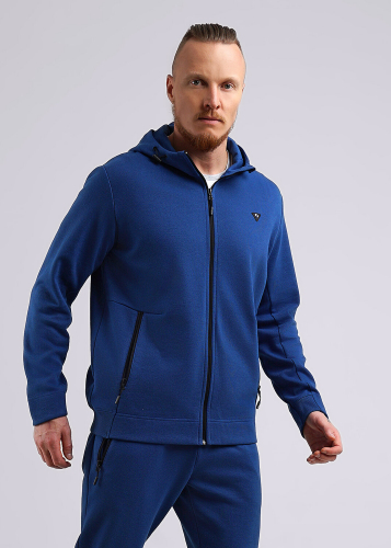 Мужские спортивные брюки из трикотажного полотна на манжете с удобными молниями на карманах. Дополнены шнурком для регулировки посадки , фирменной фурнитурой и авторским принтом. Обеспечивают свободу движений и комфорт.