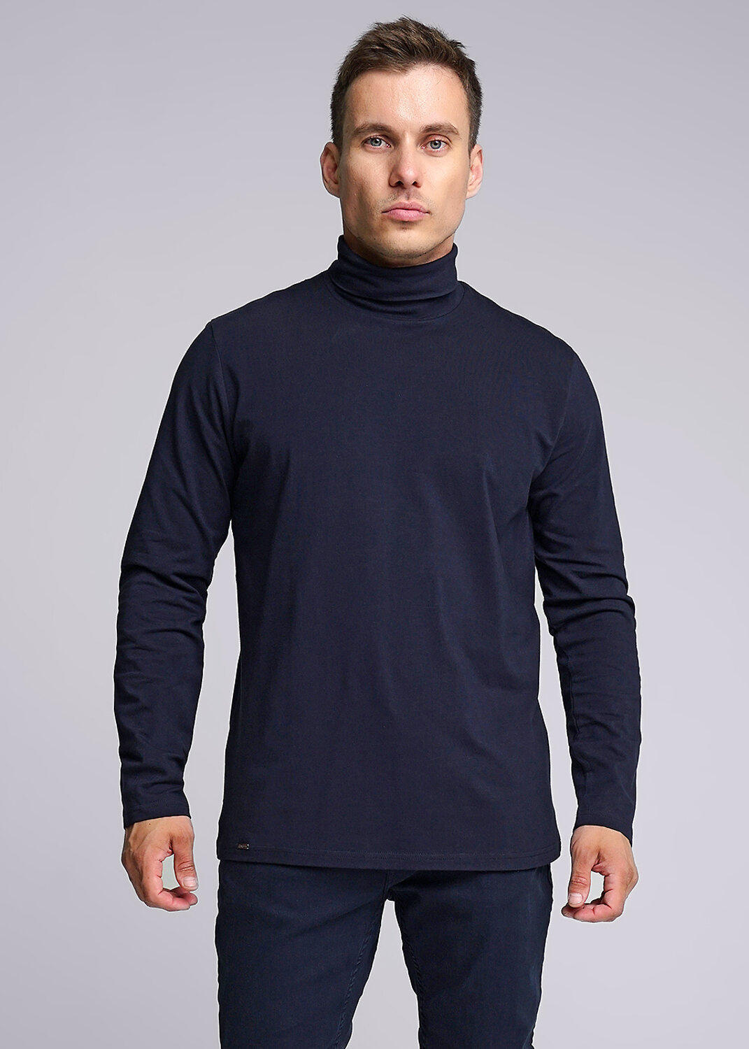 Базовый мужской лонгслив с длинным рукавом на воротнике стойке с загибом. Выполнен из дышащего хлопкового полотна. Лонгслив можно скомбинировать с брюками или джинсами. Отличное решение для похода на работу или встречи с друзьями.