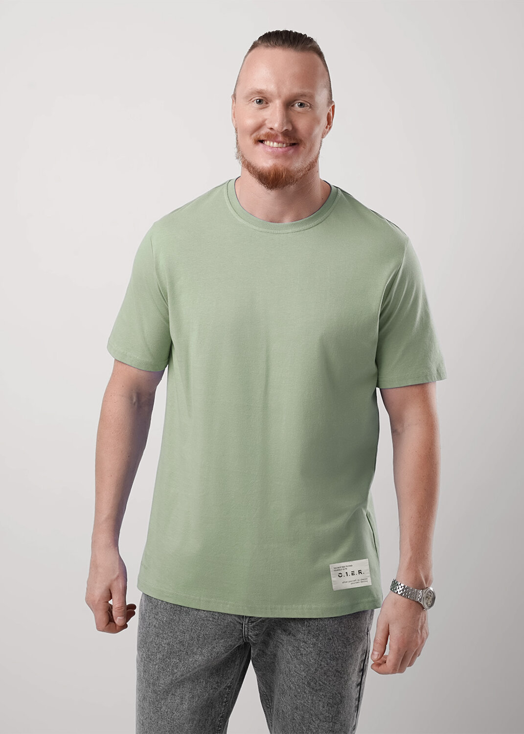 Молодёжная футболка свободного кроя с округлой горловиной и имиджевой фурнитурой. Модель подойдет к джинсам или шортам. В данной футболке можно отправиться на прогулку с друзьями.