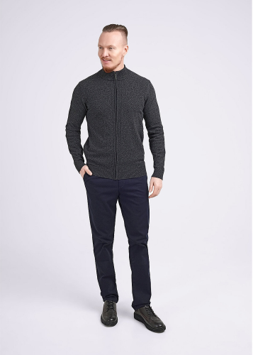 Пиджак вязаный мужской с втачным рукавом из смесовой пряжи. Изделие однобортное, с застежкой на пуговицы. Благодаря накладным карманам модель удобна в экспуатации. Пиджак можно носить с джинсами и брюками.