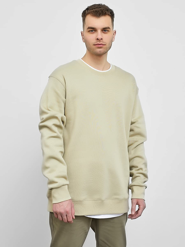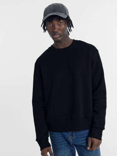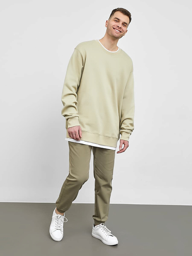 Джемпер прямого силуэта из трикотажного футера с теплым подчесом. Круглый вырез горловины с декоративной деталью из кулирки, как и нижний край – словно под джемпер поддета футболка. Рукава длинные, с манжетами. Стильный повседневный вариант. Рекомендуем для создания стильных повседневных образов!