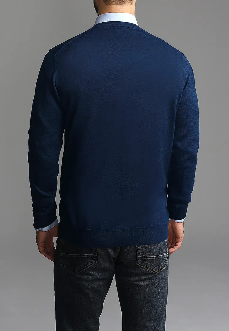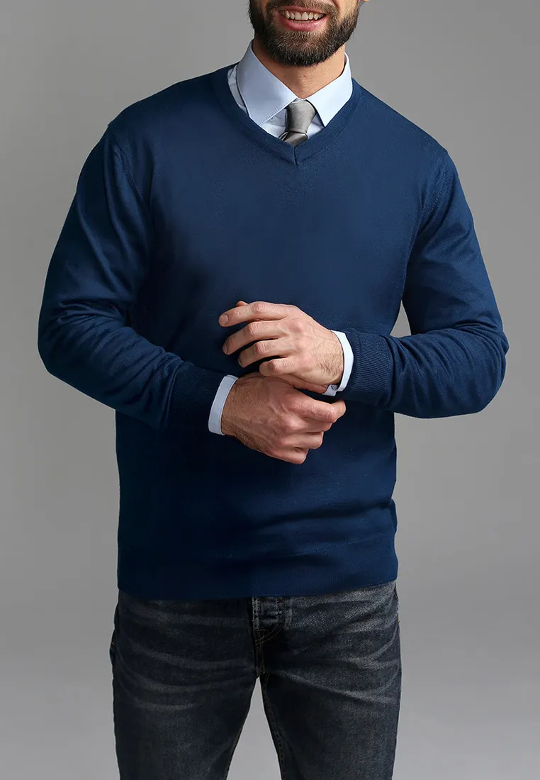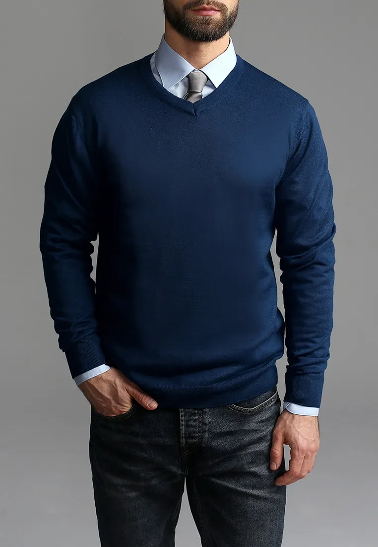 Цвет: Синий Рисунок: Трикотаж одн..показатьотонный Состав: 80% шерсть мериноса 20% акрил Модель: Классическая Ворот: V-вырез Силуэт: Прямой силуэт / Сlassic fitотонный
