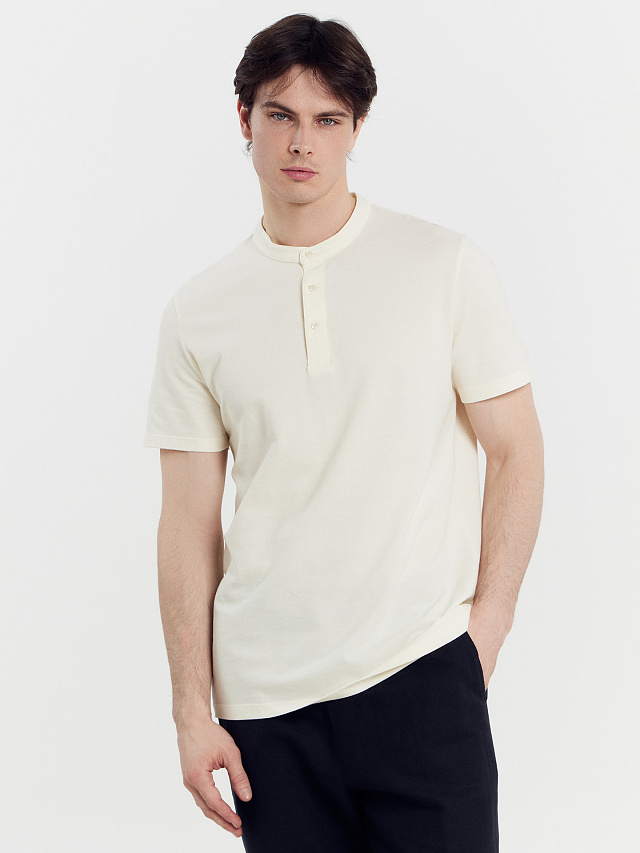 Стильная футболка мужская поло с оригинальным воротником-стойкой и удобной застежкой на 3 пуговицы. Благодаря лаконичному дизайну, прямому силуэту и комфортной длине до середины бедер она наверняка станет любимой в гардеробе, ведь отлично подходит практически ко всему. Рекомендуем!