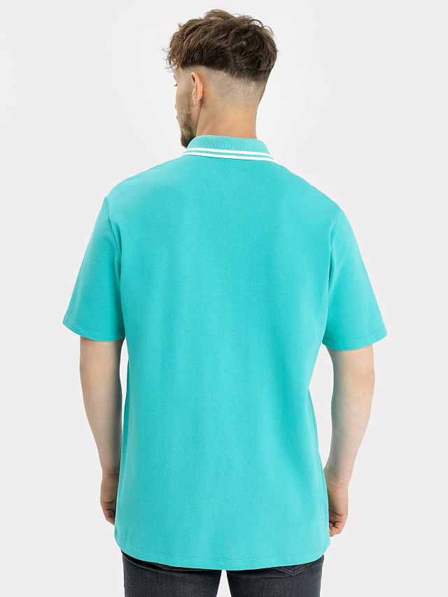 Джемпер-поло хлопковый в зеленом оттенке с линиями на воротнике