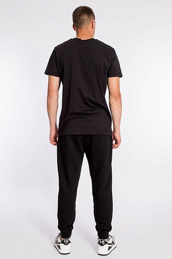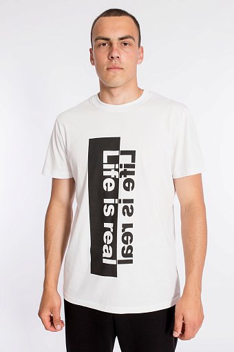 Футболка свободного силуэта из однотонного х/б полотна. Футболка с коротким рукавом, планка круглого выреза горловины выполнена из рибаны. Спереди нанесён принт.