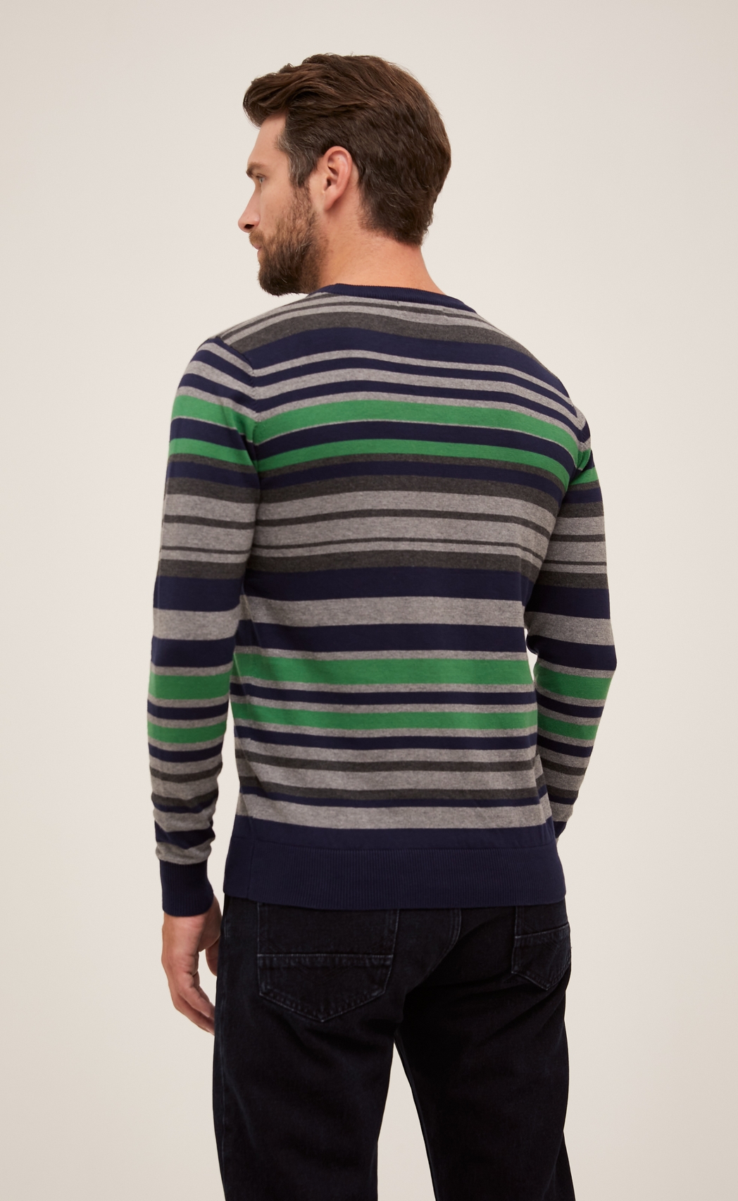 Джемпер мужской от Fine Joyce в полоску. Джемпер стандартного кроя с круглым вырезом, низ рукавов и модели отделаны окантовкой в рубчик. Джемпер мужской трикотажный комфортного кроя из приятного на ощупь трикотажного полотна с антипиллинговым эффектом (не образуются катышки), не линяет, долгое время не теряет внешний вид, если стирать при температуре 30С. Джемпер мужской с длинным рукавом прекрасно сидит по фигуре, а мягкий трикотаж (состав 100% хлопок) дарит максимальный комфорт. Благодаря удобству и универсальности этот пуловер найдет свое место в гардеробе любого мужчины. Джемпер, пуловер, водолазка, кардиган от бренда Fine Joyce – отличный вариант для повседневного стиля одежды, оптимальный выбор по цене и качеству.