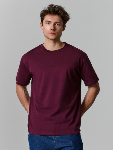 Базовая футболка в насыщенном бордовом оттенке — универсальное решение для повседневного гардероба. Свободный силуэт и спущенное плечо создают расслабленный, современный образ, обеспечивая полную свободу движений. Рукав чуть выше локтя добавляет функциональности и визуального баланса. Классическая круглая горловина с аккуратной обработкой из рибаны сохраняет форму и устойчива к растяжению.